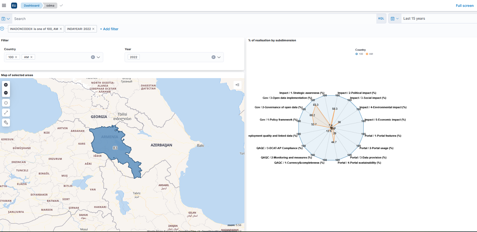 Dynamic dashboard with open data maturity assessments (2022 and 2024)